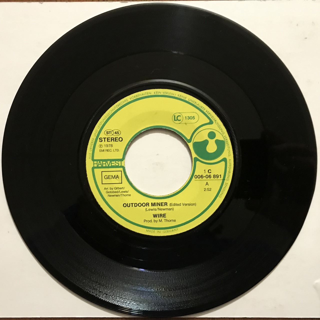 6枚目のsingleはpost punk /art rockに傾倒しつつもサビ はしっかりメロディアスな 名曲。wireの初期singleは どれも外せない名盤揃い。 condition vg/vg |